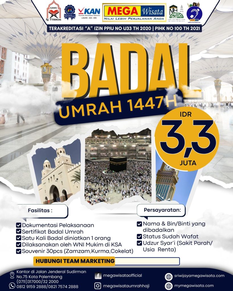 Mymegawisata.com, Makkah – Madinah. Jamaah PT Sriwijaya Mega Wisata yang telah menjalani rangkaian ibadah umrah di Tanah Suci Makkah Al-Mukarramah dan berziarah ke kota Rasulullah ﷺ di Madinah Al-Munawwarah, hari ini dijadwalkan kembali ke tanah air. Tiba insyaAllah besok Jumat kisaran pkl 12.15 Wib.