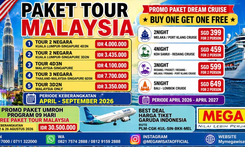 Dalam pameran tersebut, Mega Wisata menghadirkan paket tour ke Malaysia dengan pilihan durasi 3 hari 2 malam dan 4 hari 3 malam, serta paket kombinasi Malaysia–Singapura. Harga yang ditawarkan tergolong kompetitif, mulai dari Rp3.350.000 per peserta, menjadikannya salah satu penawaran yang paling diminati pengunjung.