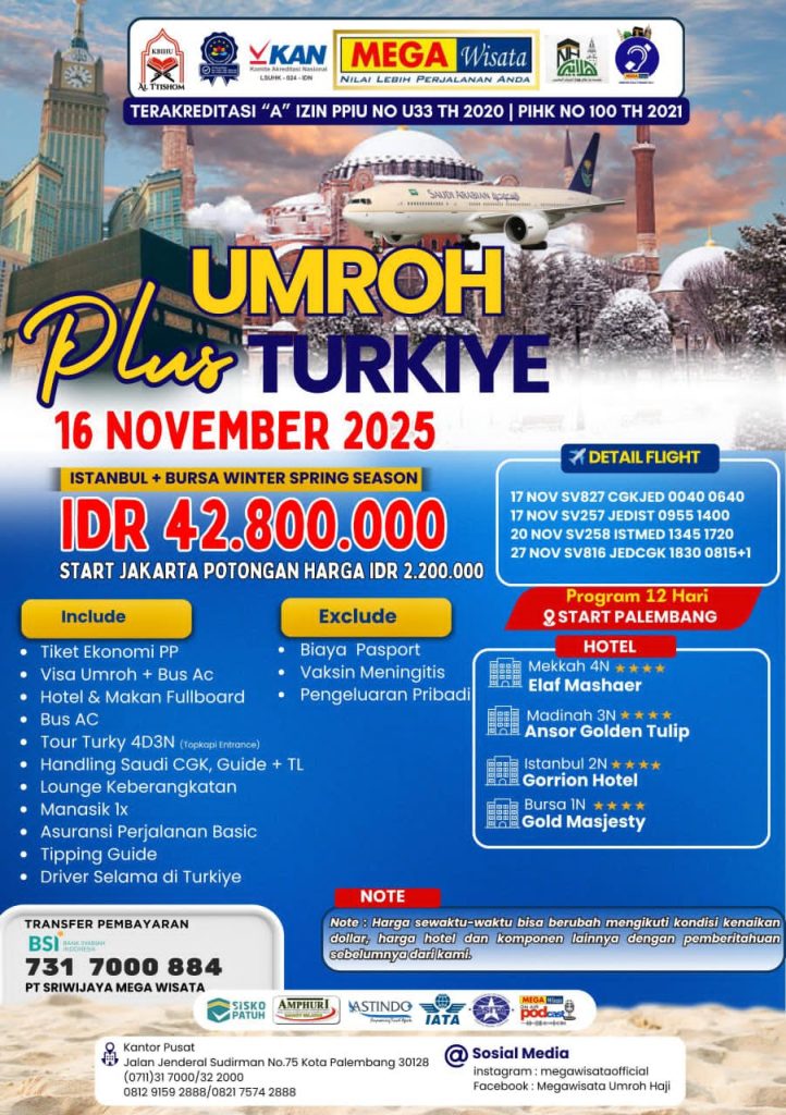 Baca Juga  Jamaah Umroh Mega Wisata Bertolak dari Palembang Menuju Tanah Suci dengan Pesan Ibadah dan Kebersamaan